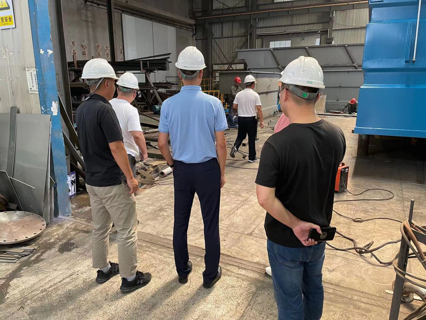 热烈欢迎新沂市李局长、苗厂长一行莅临我司参观交流 2021年9月1日,新沂市李局长、苗厂长一行莅临我司广州永乐高·60net(集团)环保设备有限公司。同我司周总针对污水处理方面进行了相关的讯息交流分享,并参观了工厂。在周总等领导的陪同下,新沂市李局长,苗厂长一行参观了公司生产区域,对公司的概况,质量把控,产品生产进行了全面的了解。